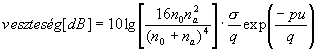 , ahol, wR és wT a vevő és adó Petermann II. sugaraA képletben szerepel a Fresnel reflexió veszteség a szálak végén, a módusátmérők illesztetlenségéből származó veszteség, valamint a geometriai illesztetleségek hatása.